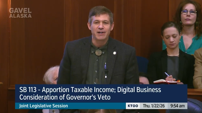 Citing a litany of worries that definitely didn't come right from corporate lobbying groups, legislators from the House and Senate Republican minorities voted en masse to uphold Gov. Mike Dunleavy's veto of a bill that would have shifted some $25 million to $65 million in annual corporate taxes generated from business done in Alaska from other states to Alaska's coffers. The opposition groups said they'd sue over it, and we wouldn't want that, one said. The state doesn't have enough time to implement the regulations, several others said. It's going to raise prices in Alaska, others added, especially in rural communities. Others continued to insist that the state has a spending problem, equating the state's dismal finances to a household that simply needs to tighten its belt after the breadwinner loses their job. A similar bill, another claimed, raised the price of Netflix in Maine!