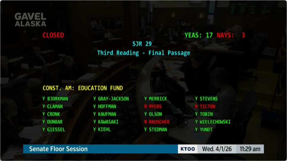 Things were a little bit more interesting for SJR 29, which would lay the groundwork for the state to create a dedicated fund for public education. Efforts to raise revenue for schools or to spare districts from the annual budget uncertainty have run into the Alaska Constitution's prohibition against dedicated funds. It means legislators can't, say, levy a tax dedicated to schools. While they can write the measure's intent, future legislators could simply change the spending by law.