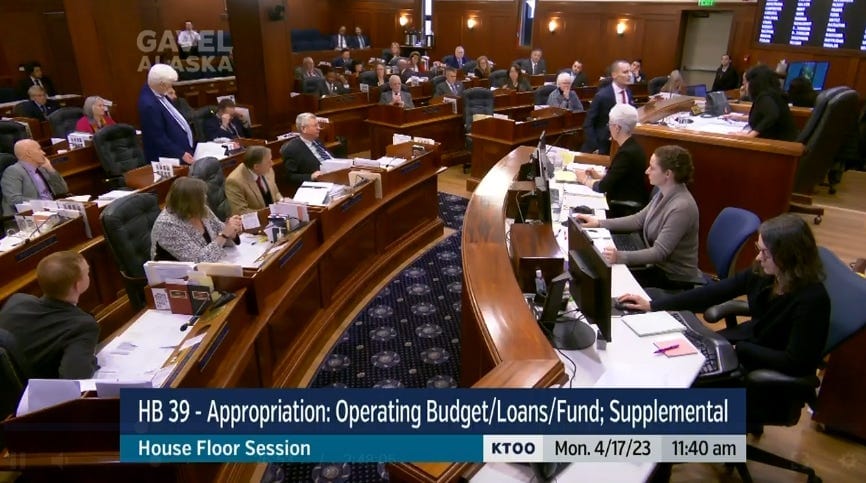 During the debate on Monday, Republicans in the Majority lauded their work as the imperfect product of an imperfect situation but argued that it hit the big points they felt were important—like a big, private-business-friendly PFD and a “historic” increase in education funding—were met. In addition, several said that passing this one-time budget will make it easier for them to think about potentially considering additional steps to maybe address the state’s financial picture in the future years, hopefully.