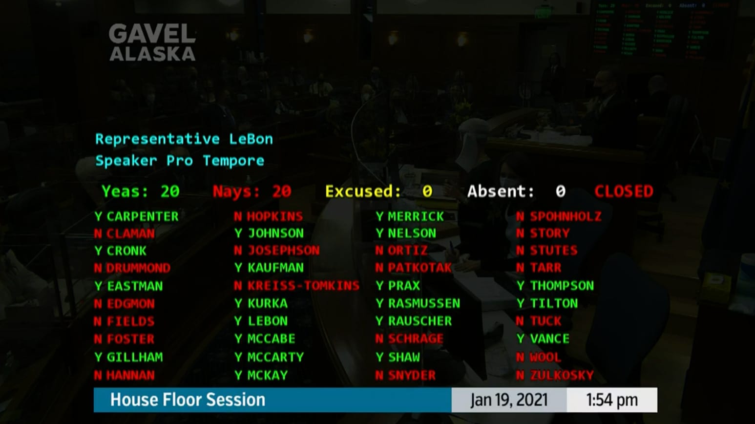 Meanwhile, the House is stuck in 20-20 with no signs of change. House Republicans put forward Rep. Bart LeBon, a Fairbanks Republican who was a member of bipartisan coalition, as their candidate for speaker pro tempore, a position that basically is just there to oversee the election of a speaker. Last time around, Nome Democratic Rep. Neal Foster had the job for nearly a month as the House figured out its organization (a move that was largely driven by the need to get now-former Rep. Sharon Jackson sworn in).