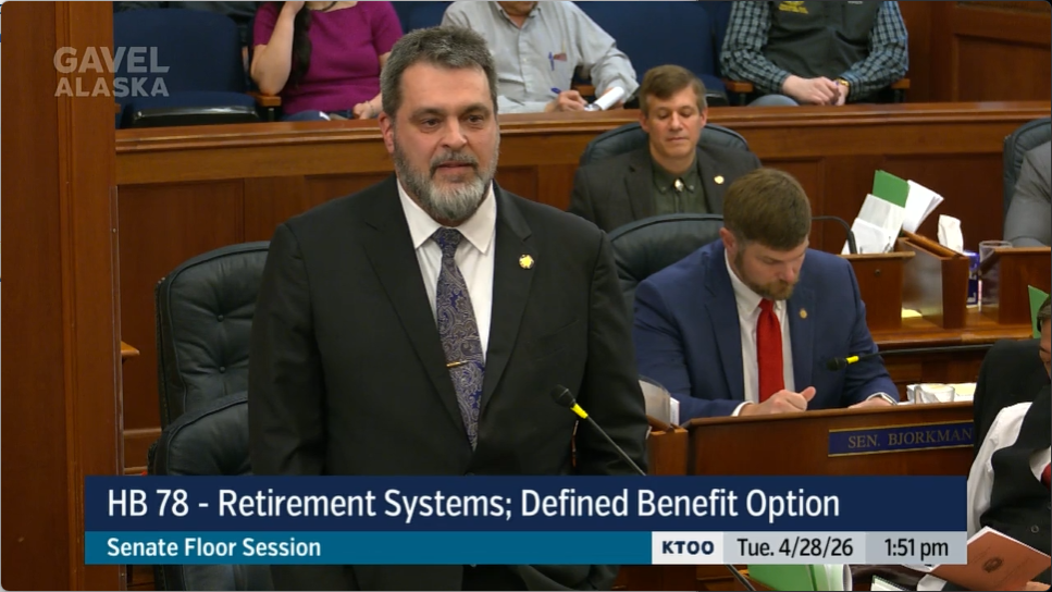"Do we really want the future generations to be exposed to the whims of the stock markets? Let's give them some sort of stability," said Sen Bill Wielechowski, D-Anchorage. "Just like we hear the many businesses that appear before us about how they need we need to they need stability, they need to be competitive, or they'll take their business dollars elsewhere. Alaska employees, troopers, teachers and firefighters are making that exact same choice."