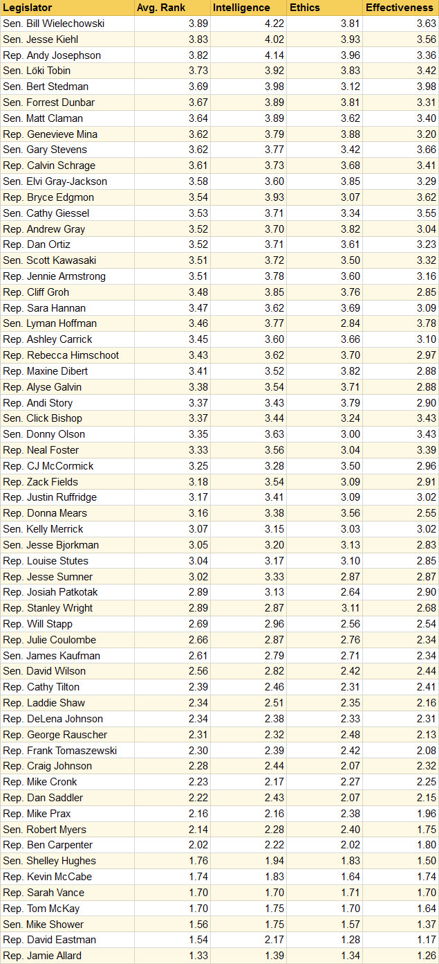 The 2023 Alaska Legislator rankings are here!